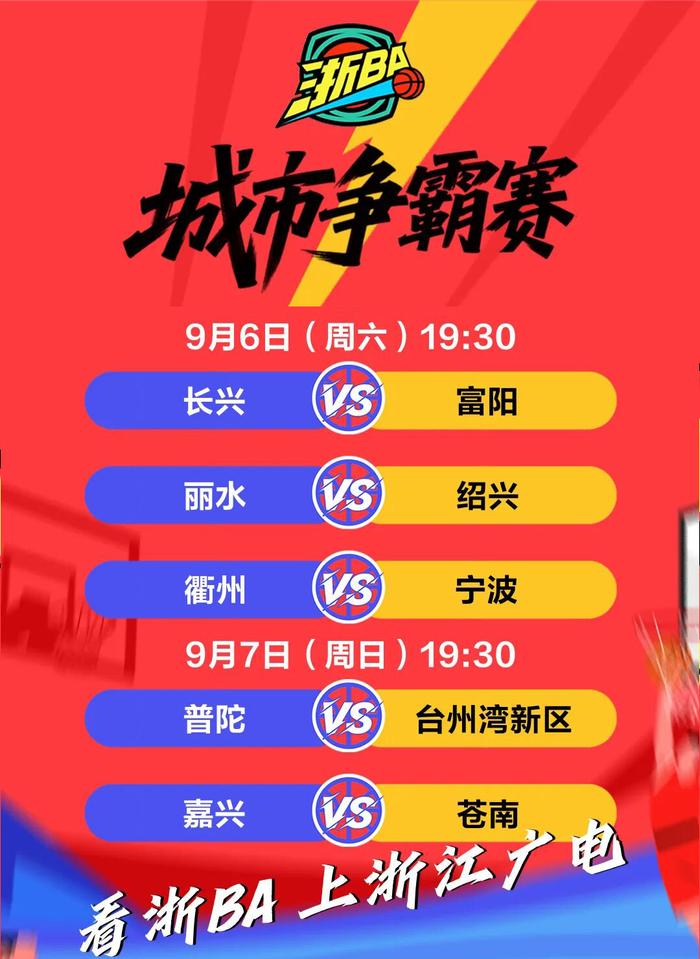 9月5日晚,“浙BA”城市争霸赛第四轮,温州队主场对阵嘉兴经开区队、台州队主场对阵舟山队、诸暨队主场对阵庆元队。最终,温州95:55胜嘉兴经开区,台州87:81胜舟山、诸暨96:58胜庆元!